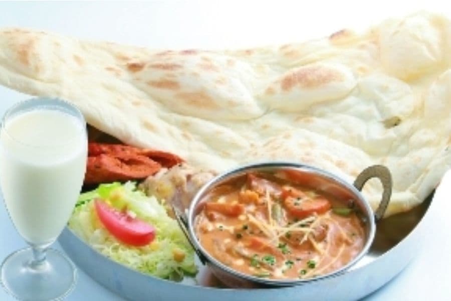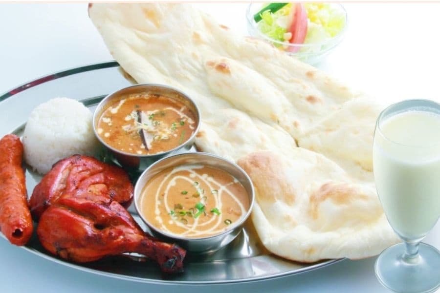 1種類のカレー(バターチキン、ミックスシーフード、マトン、キーマベーガン、ミックスベジタブルから選択)、ナン、マライティッカ、シークカバブ、サラダ、ラッシー
